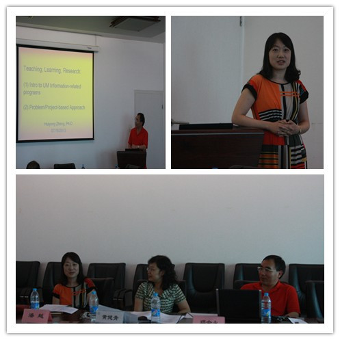 郑会永教授根据美国密西根大学的现状进行演讲。郑教授在演讲中首先强调了信息学院和工学院在美国大学中的排名与重要地位,以及信息学院与工学院富有特色的专业构建(包括计算机,电子工程等等)。而后简单的介绍了密西根大学信息学院的历史,从1926年图书馆工程(library science)到1986年的信息学院(the school of information)的演变过程。之后,简单讲解了美国密西根大学招生的现状与费用等问题。同时介绍了密西根大学学生学习方面的基本状况,比如在信息化时代学生应该如何掌握生活与专业技能,如何控制信息,总结信息,如何去认识世界,如何去分析数据,如何去提高自己的实际操作能力等等。郑教授还介绍了本科生在毕业的时候应掌握的必要技能,通过中国学生和美国学生的比较,着重强调中国学生在实际动手能力上欠缺的这一突出现象。郑教授就中国信息学院和密西根大学信息学院课程专业特点以及专业方向进行对比,以密西根大学对学生课程学分等要求的方案为例,进行了深入的分析。建议学院引入一些课程,突出强调统计和数据管理的重要性,以适应大数据时代的要求。最后,郑教授结合自己的亲身经历和学生的交流合作,介绍了学生的假期课外活动。他强调这些活动对学生的技能发展十分有益处,在授课时应重视学生project的制作,并将重点放在流程上:例如设立问题,准备数据,模型的建立分析(需要多院合作),报告文章的撰写。