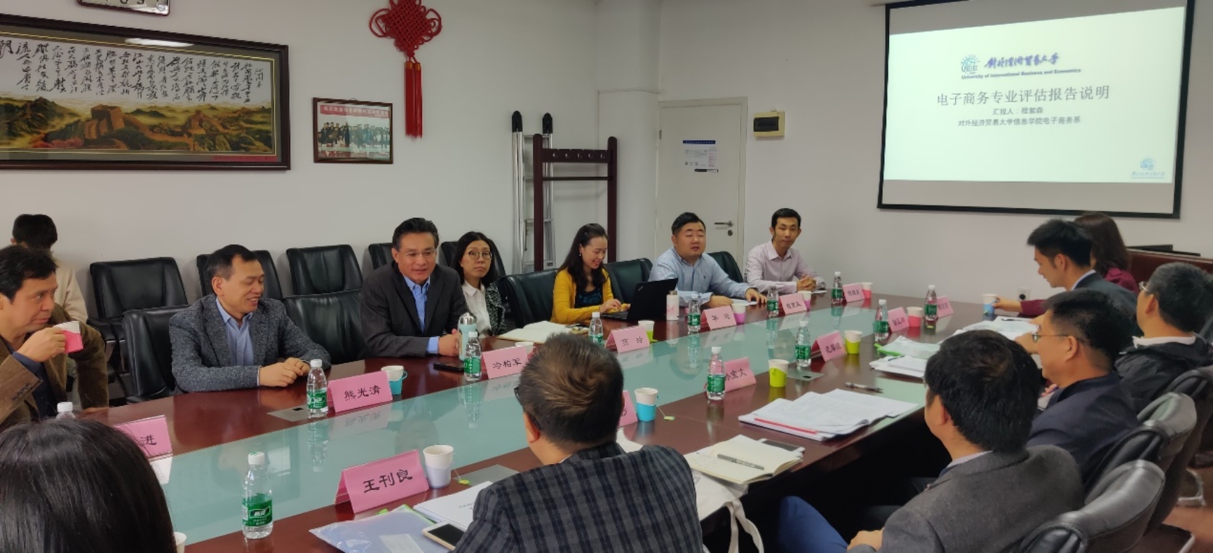 2019年10月9日上午,信息学院电子商务专业校内本科专业评估现场考查工作正式启动,评估专家组见面会在博学1416会议室召开。