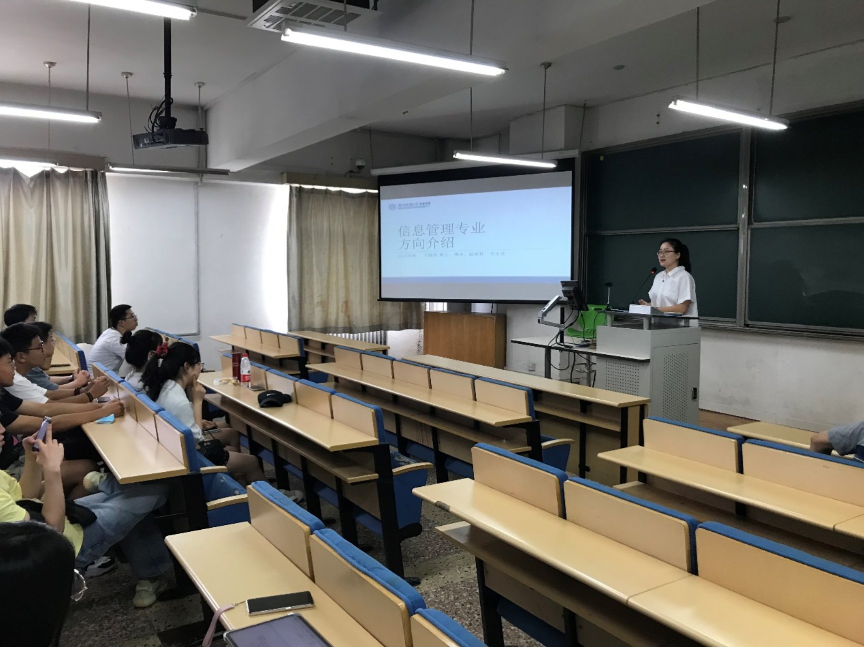 本科教学副院长华迎老师在会上首先对于电子商务以及信息管理与信息系统专业进行了简要的概括讲解,并对学生选择专业提出了建议。