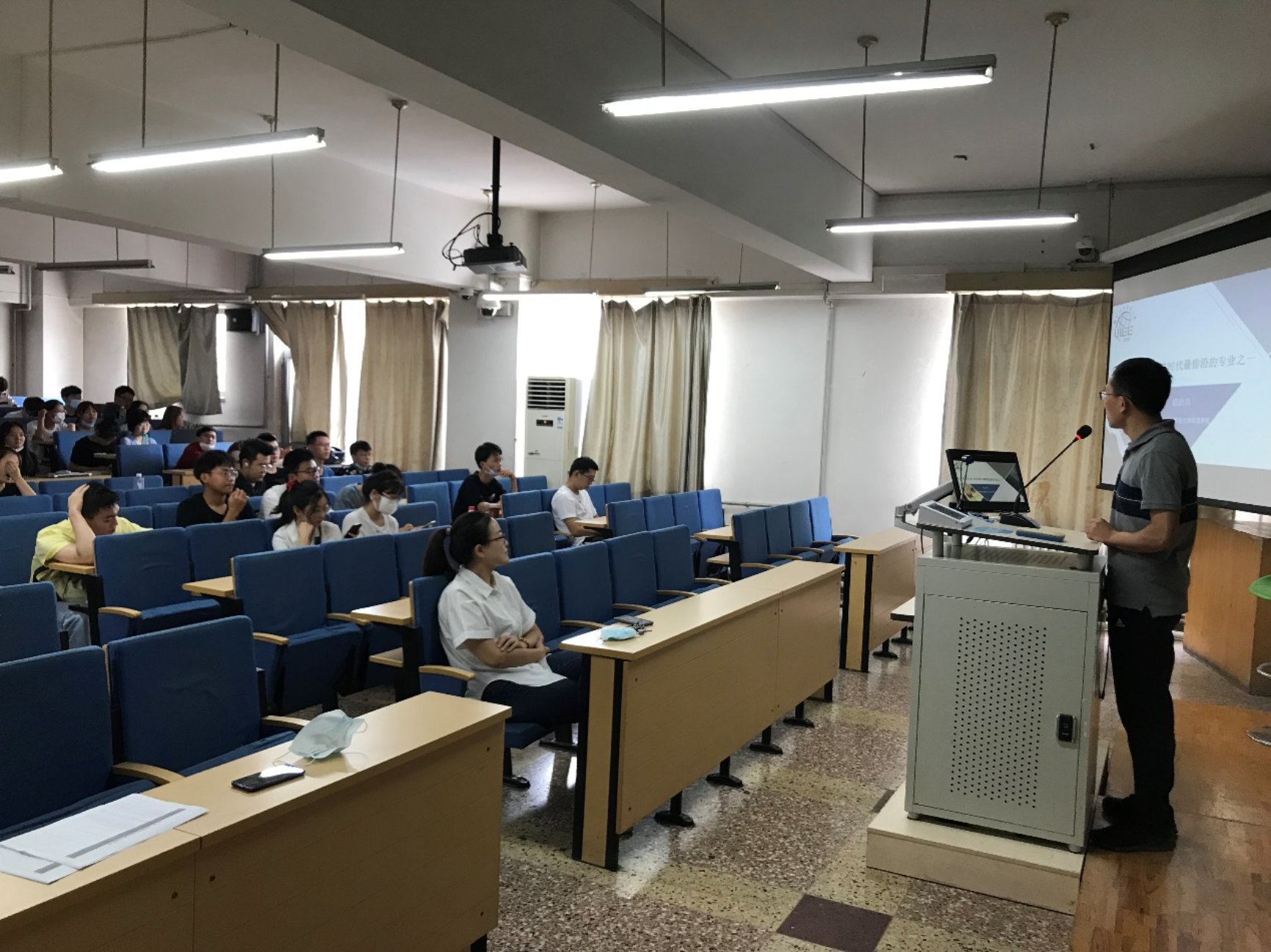 最后,电子商务专业系主任屈启兴老师对着重讲解了什么是电子商务、电子商务专业是什么以及电子商务专业学什么三个问题,接着介绍了专业的培养目标和师资力量,并对学生未来学习生活上的规划提出了建议。