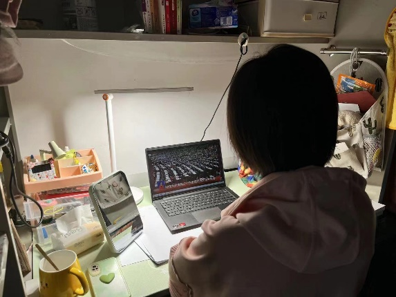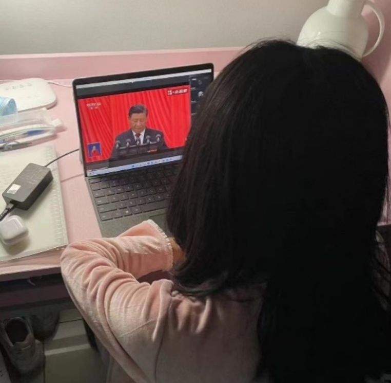 认真收听大会直播的同学们