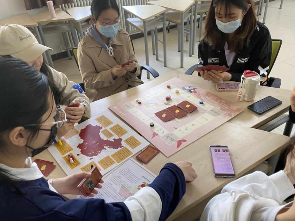 李恩澄则深受家中老党员的影响,从小便对党有着向往,但由于高中学习理科的原因没能全面、深入地去学习党史,学习有关党的发展历程、指导思想与重要政策方针,所以很高兴本次活动的开展给予了他一次趣味学习的机会,卡牌上的故事随着棋子的前进彷佛于他眼前重现,这对他来说是一次思想上的提升,也是一次精神上的鼓励。