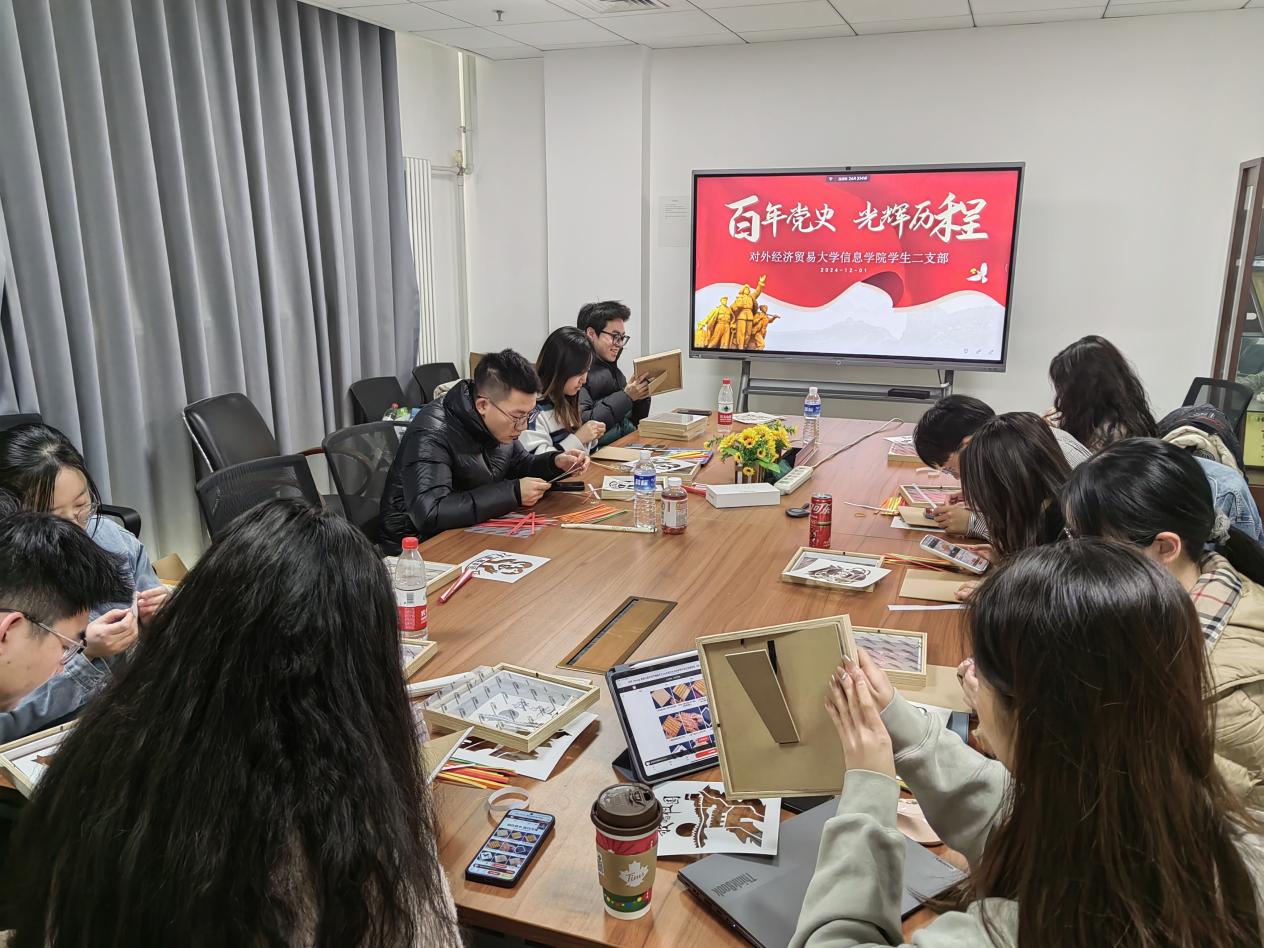 为弘扬中华优秀传统文化,增强党员的文化自信与归属感,12月6日,信息学院学生二支部组织一场别开生面的非物质文化遗产竹编画制作活动,支部书记叶潇舟和支部党员参加。