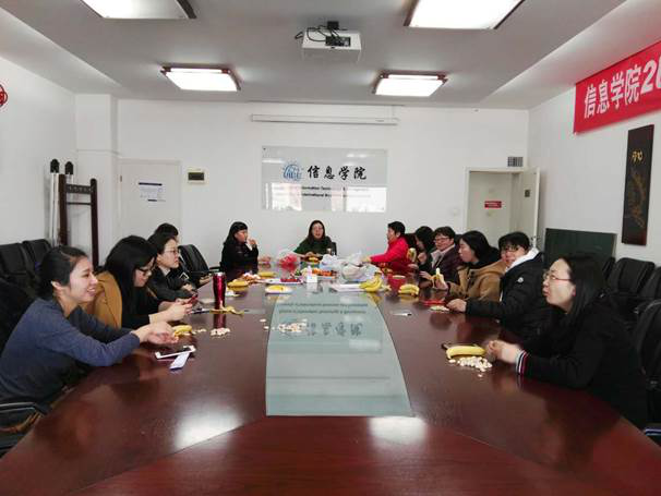 为庆祝第108个“三八”国际劳动妇女节,2018.3.8下午,信息学院举办了庆祝“三八”妇女节座谈会活动。院分党委副书记(主持工作)高玲以及信息学院的女会员们参加了座谈会。
