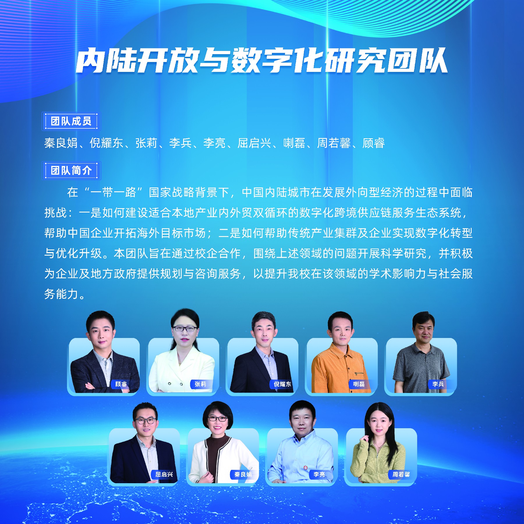在“一带一路”国家战略背景下,中国内陆城市在发展外向型经济的过程中面临挑战:一是如何建设适合本地产业内外贸双循环的数字化跨境供应链服务生态系统,帮助中国企业开拓海外目标市场;二是如何帮助传统产业集群及企业实现数字化转型与优化升级。本团队旨在通过校企合作,围绕上述领域的问题开展科学研究,并积极为企业及地方政府提供规划与咨询服务,以提升我校在该领域的学术影响力与社会服务能力。