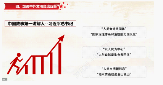 霍怡情同志在这一部分为大家分析讲述了坚定文化自信的原因。首先,她指出文化自信在“四个自信”中的基础作用。坚定中国特色社会主义道路自信、理论自信、制度自信,说到底是要坚定文化自信。文化自信是道路自信、理论自信和制度自信的基石,只有建立在文化自信的基础上,这三者才更加稳固。随后,她重点解说了文化自信的来源,无论是新民主主义革命时期还是新时代我们要进行的社会主义现代化建设,要想实现伟大中国梦,都离不开文化所激发的精神力量。 最后,霍怡情同志呼吁我们必须始终坚定文化自信,不断激发全民族文化创造活力,更好的构筑中国精神、中国价值和中国力量。