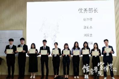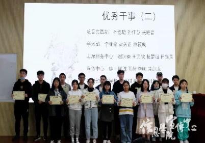 大会第三部分是对上半学年的优秀部门、部门负责人以及干事进行表彰。工作人员为各位优秀代表颁发奖状,随后大家在台上合影留念。同学们手中的奖状,寄托着团学联对同学们的信赖、期许、肯定和认可,也希望同学们可以再接再厉,在新的学期创造新的辉煌。