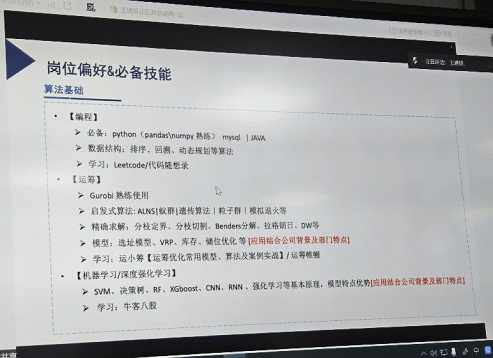 2024届校友、现任职于京东的王婧妍,围绕核心工作内容、岗位必备技能、求职规划制定及实用经验技巧四大维度展开分享。她建议同学们结合学业规划时间节点,逐步积累实习与项目经验,明确职业发展方向,不断提升专业技能;此外还特别强调了简历制作的核心在于‌精准匹配岗位需求;同时解答了“首份算法实习获取、管科专业技能适配性”等问题,为相关专业学子及意向从业者提供了清晰的求职思路与实践参考。