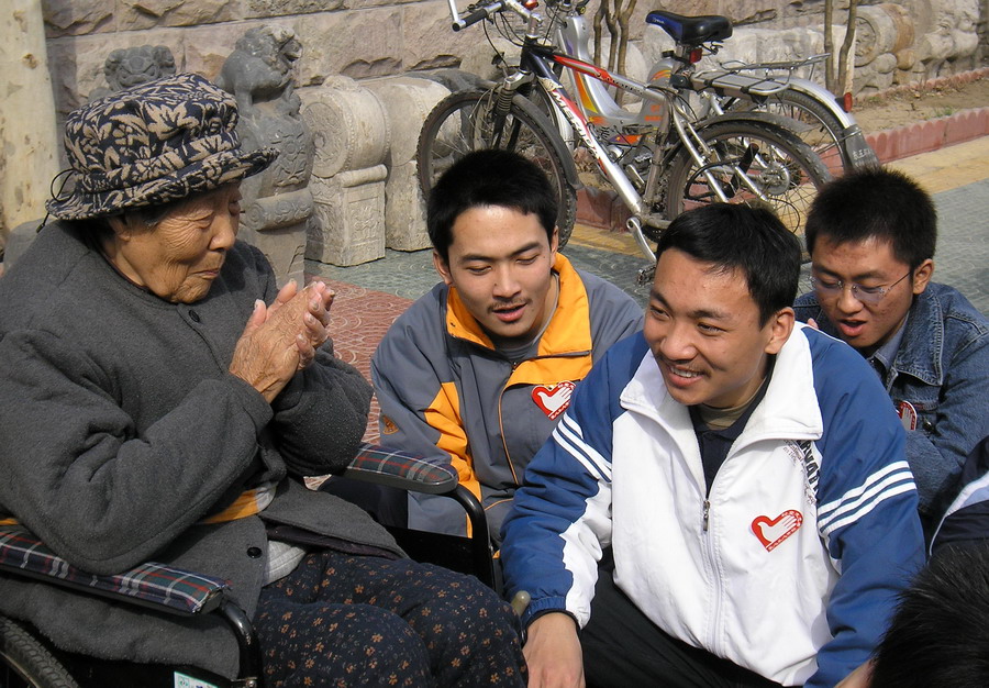 男生们也为老人唱起歌谣