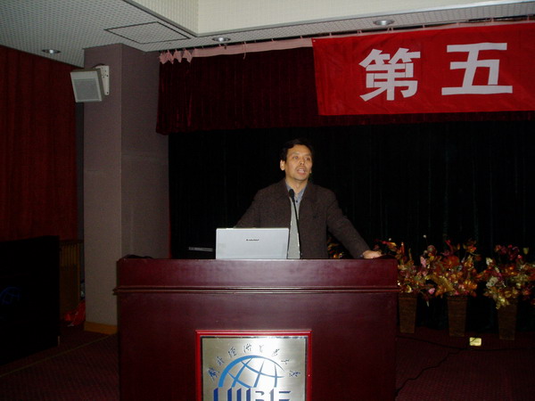 11月15日晚7点,IT文化节的重头戏——一年一度的IT经济论坛在诚信三楼国际会议厅隆重举行。与时俱进,根据当前的时代趋势,本届论坛的主题为“奥运——信息产业发展的契机”。当晚到场的主题演讲嘉宾有:北京正略均策管理咨询公司副总裁吴镝先生,神州数码金融公司技术总监及高级咨询顾问马小斌先生,北京市多媒体实验室高级工程师任晓明先生。信息学院院长陈进教授、党总支副书记张志娟老师、团总支书记苗冬青老师作为东道主同时参加了当晚的论坛。论坛由信息学院学生会主席李东方主持,信息学院及其他院系对信息经济发展颇为关注的贸大学子齐聚一堂。