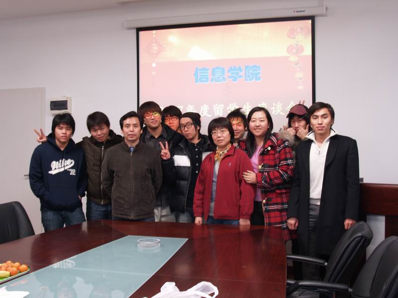 | 信息学院举行“庆新年”留学生工作座谈会 2007年12月29日下午,信息学院举行“庆新年”留学生工作座谈会。信息学院院长陈进教授、分管本科生教学的曹淑艳副院长、负责外事工作的沈沉老师、负责留学生日常管理的苗冬青老师同留学生们一起度过了美好的时光。 首先,陈院长为留学生们送去了节日的问候,祝福大家在异国他乡能够度过一个温馨而有意义的元旦。 随后,留学生们畅所欲言,交流了半年多来在信息学院学习、生活上的体会和收获。留学生们用日益熟练的中文表达了他们对学院老师的感谢。同时希望学院能够多提供和创造一些机会,使他们广交中国朋友,参与到更多的活动中来。 之后,曹院长就即将到来的期末考试与留学生做了进一步的交流和沟通。曹院长指明期末考试的重要性,提醒留学生们一定要遵守考场秩序、坚决杜绝作弊等不良风气,提前做好期末考试的各项复习工作。 学院还为留学生们准备了精美的礼物——2008奥运会纪念章。这份礼物寓意着2008对每个来华学习的留学生而言都是一次难得的机会和宝贵的经历。留学生们非常喜欢这份富有特殊意义的礼物,有的同学当场就把徽章别在了胸前。 2007年是信息学院留学生招生的第一年,在院领导的关怀和支持下,取得了一定的成绩。学院将继续努力,为留学生做好各项教学服务工作,争取在学院留学生工作上取得新的突破! 信息学院 2008-1-2 ![]() | |