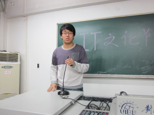 之后,学生会主席周宇对此次IT文化节进行了评价。他以两个感谢为开头,首先感谢叶老师的大力支持,其次感谢每一个参与者的努力,之后,他作为在场多数人的学长,讲述了自己在学生会多年的一些感受与经验,他说,每一个人都要思考,自己如何把自己做到最好,要坚持自己的梦想,要学会感恩宽容,学会做出自己的选择,给了在场同学以很大得到启示。