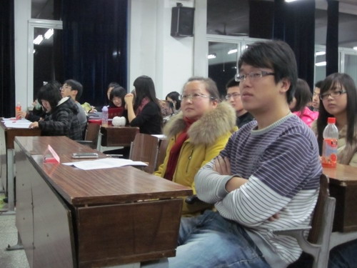之后,便是优秀干事的颁奖仪式,叶老师亲自为二十余名获奖干事颁奖,这一奖励是对IT文化节干事们努力的肯定和鼓励。颁奖过后,是优秀干事代表骆振兴同学发言,他叙述了自己半年来在学生会的经历和感触。