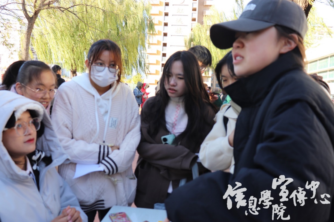 套圈游戏与趣味猜词也备受同学们欢迎。同学们兴奋地看着手中的圆环,奋力一掷,现场充满了欢声笑语。另一边的趣味猜词游戏同样热闹非凡。有的同学低头沉思、有的同学热烈讨论,他们全神贯注地投入到游戏之中,享受着游戏带来的乐趣。