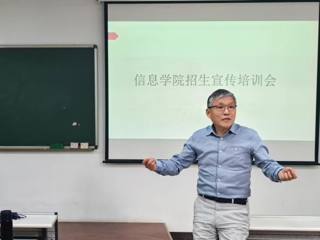 2024年4月22日,信息学院在求索楼103召开了2024年招生宣讲培训会。此次大会面向全院教师,重点介绍了即将开设的人工智能创新创业试验班以及人工智能专业的培养特点,同时对大数据保险实验班和大数据法学实验班的培养方案进行了详细解读。