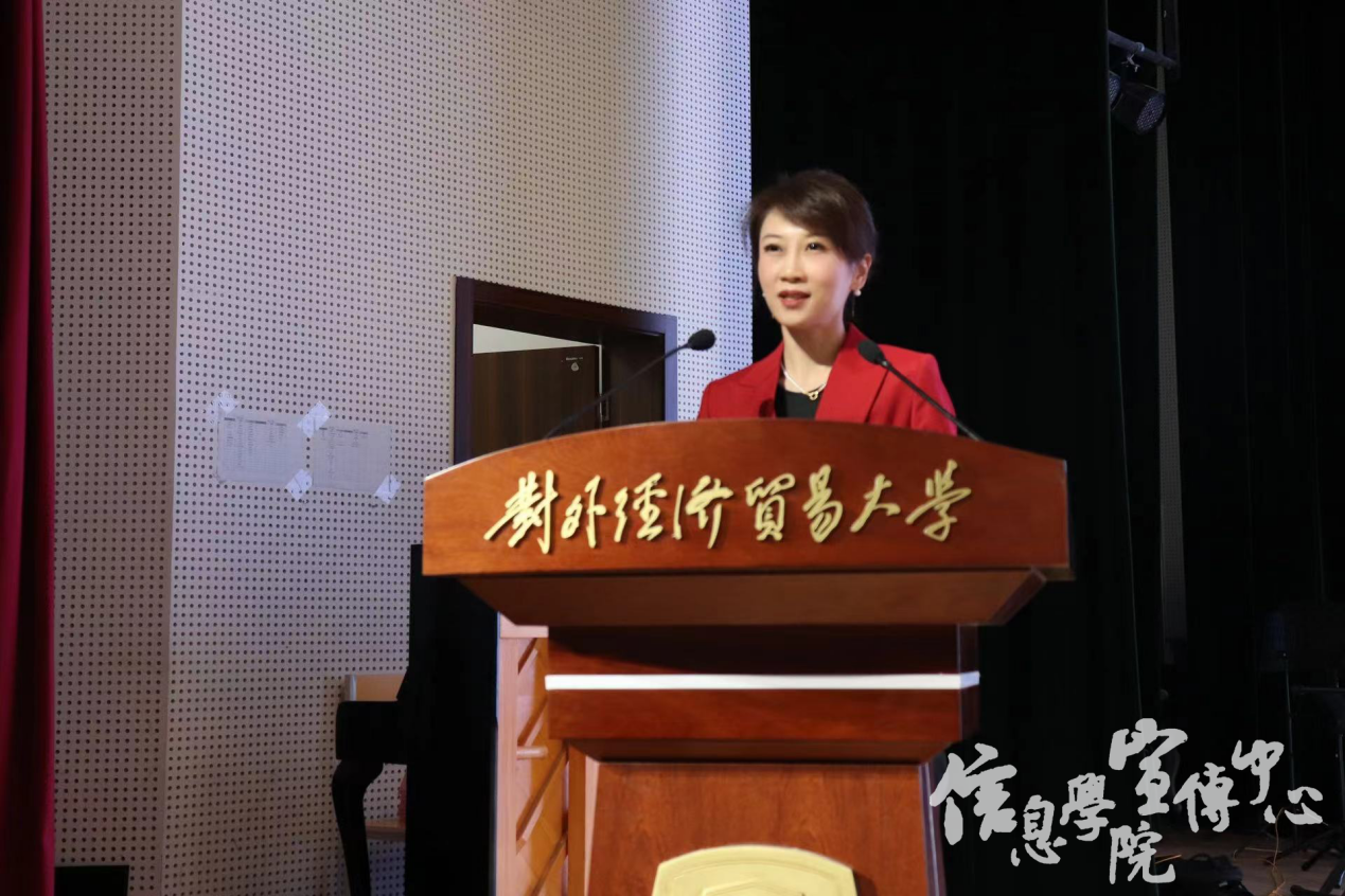 紧接着,新生班主任代表许萌老师发言。她首先祝贺新生们开启了人生的新篇章,进入信息学院这个充满温暖的大家庭。她提到学院能给同学们提供广阔机会,让同学们能追求梦想,提升自我,取得进步;并表达了班主任老师们对新生的关怀与支持。青春由磨砺而出彩,人生由奋斗而光华。最后,许老师祝愿所有新生同学们在大学中养成良好学习习惯,关心他人,坚持锻炼,保持健康,度过充实的大学生活。