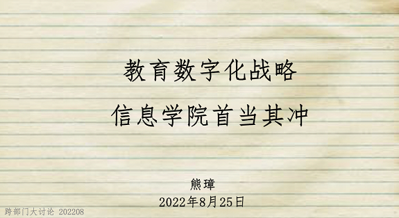 为落实教育部教育数字化战略和数字教育大讲堂活动精神,2022年8月25日14点至16点30分,教务处、信息处、信息学院三部门围绕“海棠小说 数字教育发展方向、目标与道路”联合开展思想大讨论活动,三部门密切沟通,提前策划讨论议题,每个发言的老师精心准备,既有国家教育数字化战略的解读,也有兄弟院校教育数字化发展情况的对比,更有对贸大数字化教育实现路径和工具的分析,大家直面学校数字化教育面临的机遇与挑战,积极建言献策,共同贡献智慧。