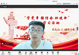 第四部分进行了党章知识竞赛,竞赛内容包括三小部分:党章党史知识、红色诗词、红色歌曲。同学们通过腾讯会议的举手功能积极参加,同时在参与竞赛的过程中加深了对党章知识的记忆。