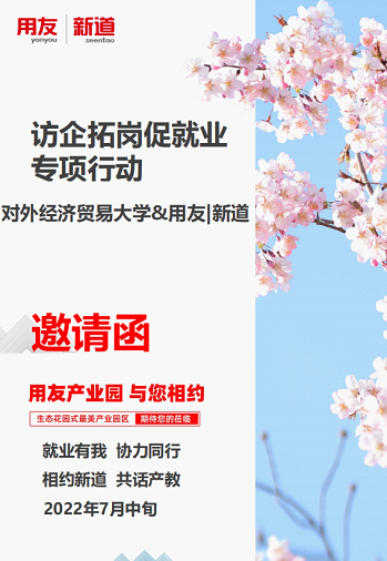 为了贯彻党中央、国务院“稳就业”、“保就业”决策部署,落实国务院全国普通高校毕业生就业创业工作会议精神,信息学院根据教育部、北京市相关文件和我校《2022年毕业生就业创业“百日冲刺”工作方案》(贸大党发[2022]30号)要求,于2022年7月13日9点与用友集团新道科技有限公司在用友数智企业体验馆举行访企拓岗促就业活动。