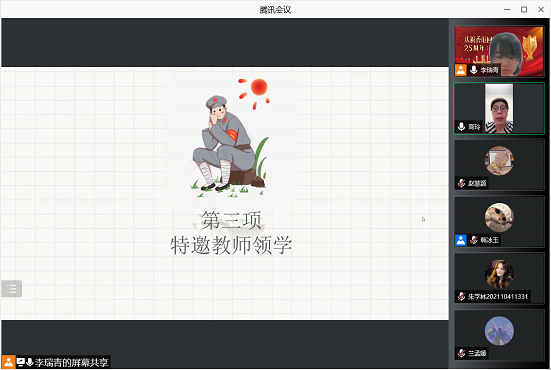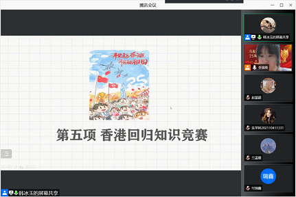 第四部分进行了香港回归知识竞赛,竞赛内容包括十道题目抢答,同学们通过腾讯会议的投票功能积极参加,同时在参与竞赛的过程中加深了对香港回归相关知识的记忆。