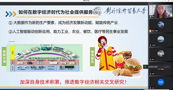 随后,会议进入讨论环节。围绕第一议题:信息学院如何顺应数字经济发展浪潮,为学校做更多贡献,以及如何在数字经济中为社会提供服务。张琦老师认为随着大数据人工智能等多项新兴技术的深化应用,大数据会成为这种全新经济形态下的关键生产要素,数据资源的有效利用以及开放的数据生态体系,将驱动传统产业的数字化转型以及新业态的培育发展,提高传统产业的劳动生产力,培育新市场和产业的新增长点,促进数字经济持续发展创新。作为高校科研人员,要顺应数字经济潮流利用我们的技术积累,推进大数据人工智能等新兴技术与其他行业的交叉研究,并且努力实现技术转化,从而提高生产效率和经营效益,为社会提供优质服务,为学校提供作出更多贡献。王小磊老师建议学院通过以实习项目的方式带领学生进入到企业实习之中,从而增强学生的实践能力;增强学生的素质素养,并对素质素养进行分类,保证学生能够在求职过程之中,将企业的方向发展,海棠小说与个人的素质相匹配;最后尽早增强学生的科研熏陶。