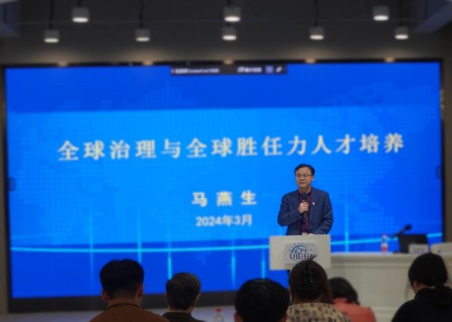 4月16日,全球治理人才培养推送春季学期系列培训活动——《全球治理与全球胜任力人才培养》主题讲座在求真楼319就业招聘大厅进行。本次讲座由招生就业处和信息学院共同主办,讲座邀请到中国教育国际交流学会新青年全球胜任力培养项目专家指导委员会主任、原中国驻法国使馆教育处公使衔参赞马燕生先生主讲,我校党委副书记张小锋出席并致辞,信息学院党委书记梁伟主持。