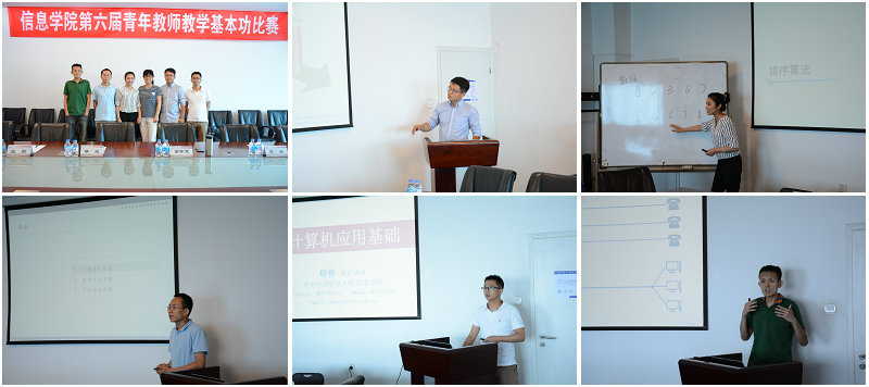 继青年教师基本功大赛启动会之后,信息学院于6月21日上午9:00在博学1415举行了学院青年教师教学基本功大赛。担任本次比赛的评委有华迎教授、李兵教授、张莉教授、谢怀军副教授、王晓波老师,比赛由工会主席姜华老师主持。