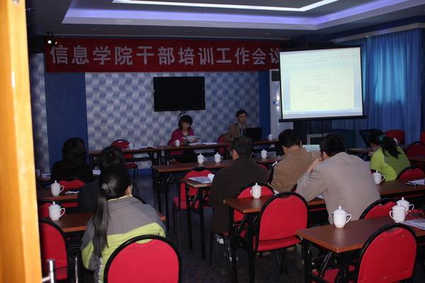 为进一步提高干部管理水平,明确工作任务及协作要求,全面提升学院领导班子的凝聚力,4月16日下午,信息学院举行干部培训工作会议。院领导、系主任、副系主任、各室主任、工会主席、团总支书记、校友中心主任等参加会议,会议还特邀民主党派代表和退休老教师代表参加。党总支书记巩喜云主持会议。
