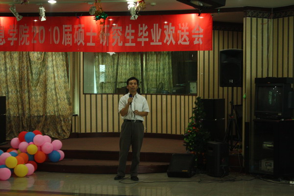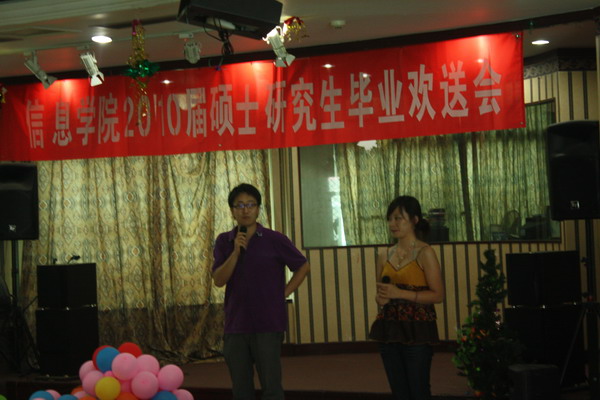 2010年6月25日,信息学院在博学楼多功能厅为39名2010届产业经济学研究生毕业生举行了毕业欢送会。会上,学院老师预祝他们在毕业后的道路上一帆风顺,毕业生们也表达了对学院的感激和留恋之情。陈进院长、曹淑艳副院长、谢怀军老师、赵星秋老师、陈恭和老师、姜华老师出席了欢送会。