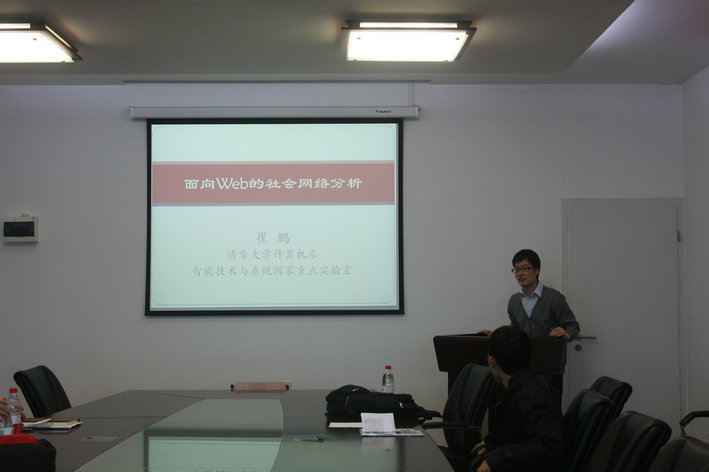 2011年4月14日下午3时,信息学院“新兴电子商务参与者行为规律学术创新团队”在博学楼1415室举办学术讲座。本次讲座邀请清华大学计算机科学与技术系崔鹏博士作题为“面向Web的社会网络分析”的学术报告。讲座由“新兴电子商务参与者行为规律学术创新团队”倪耀东老师主持,电子商务系和信息管理系的许多教师和学生参加了此次讲座。