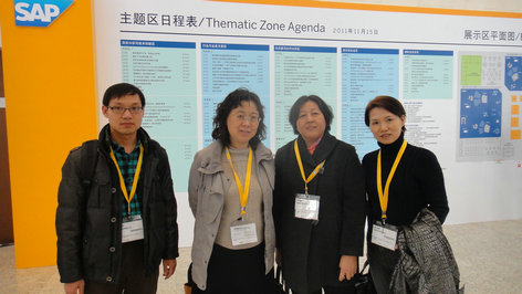 11月15日,信息学院09级本科生和11级研究生一行参加了于国家会议中心举行的SAP中国商业同略会暨全球技术研发者大会。一天的会议行程中,同学们聆听了海尔集团创始人张瑞敏先生和SAP联席创始人哈索博士的主题演讲,并了解了包括SAP、SUMSUNG、德勤、惠普等公司在内的大学联盟或招聘计划。此次活动由SAP大学联盟在我院的联系人刘瑞林老师组织,吴梅梅老师、王朝培老师、秦东方老师与同学一同参加活动。