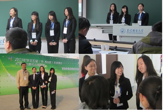 2013年11月2日下午15:00,“天翼华为杯2013年华北五省(市、自治区)暨港澳台大学生计算机应用大赛”颁奖典礼如期举行。继去年首次参加理工科计算机专业组织的大赛并获奖后,今年我校在此大赛中再创佳绩,共5支队伍获奖,其中二等奖2队、三等奖3队。