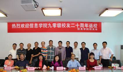 2014年5月17日,信息学院在博学楼1415会议室举办了“90级校友毕业20周年返校”活动。本次联谊会以“二十载后重聚首,共赴母院叙离情”为主题,吸引了90级的十几位国内外优秀校友参加。院领导巩喜云书记、曹淑艳副院长以及教师代表参加了返校活动。