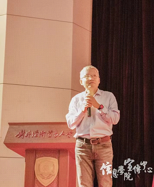 最后由熊璋院长致辞。熊院长首先对新生们的到来表达了热烈欢迎,紧接着向同学们提出了几个问题。熊院长表示,这些问题我们现在或许会疑惑,但同学们仍要常记常思,它能时刻提醒我们路在何方,虽置身于时代的浪潮中,但不随波逐流,他希望在信息学院的四年能让同学们找到答案,并逐步坚定自己的信仰,在找寻人生路时,收获更好的自己,让青春无悔。