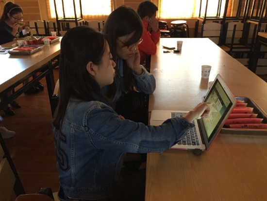 随后,共建支部交流会在南小庄村101农场会议室正式开始。首先由学生党员刘潇同学向南小庄村学生村官展示了“南小庄村微信公众平台”的初步框架,并从公众号登陆、功能设置、再到图文编辑美化排版等方面,耐心细致地向其介绍了微信公众号的日常操作流程与运营方法,协助南小庄村党支部开创互联网政务办公新模式。