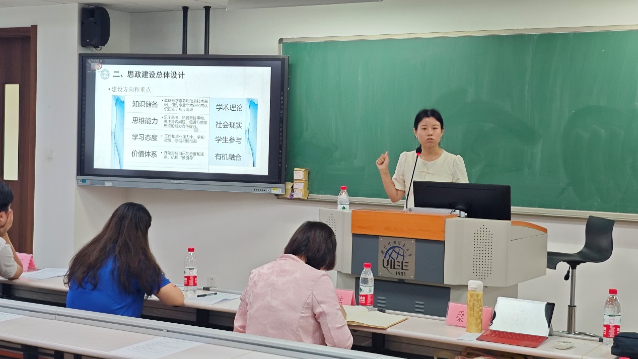 接下来,信息学院金悦老师和政府管理学院李海莲老师分别进行了课程思政教学案例展示。金悦老师以《数字经济学》课程为例,介绍了其课程思政的总体设计和实践经验,特别强调了家国情怀、四个自信和政治认同在课程中的融入。