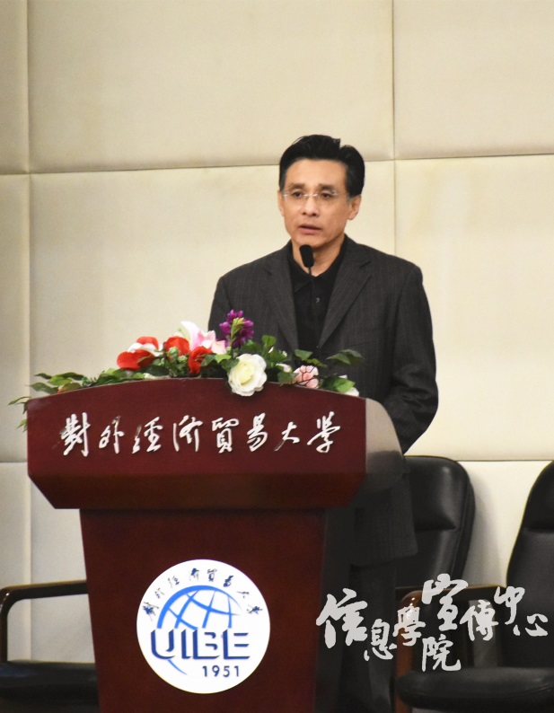 随后,冷柏军院长致开幕辞。他谈到,近年来互联网已经渗透至各个产业,提供了大量创新创业的机会。创新精神和创业能力已成为时代精英的必备特征。IT文化节薪火相传十七载,既是信息学院繁荣二三课堂文化、助力新时代复合型人才培养的典型案例,也是万众创新下的教育革新。十七年来,信息学院一直把学生工作放在创新人才培养的整体框架下思考,向全校学生传播IT文化,让贸大学子感受信息与经济结合的强大活力,感受大数据时代下的新经济特征。