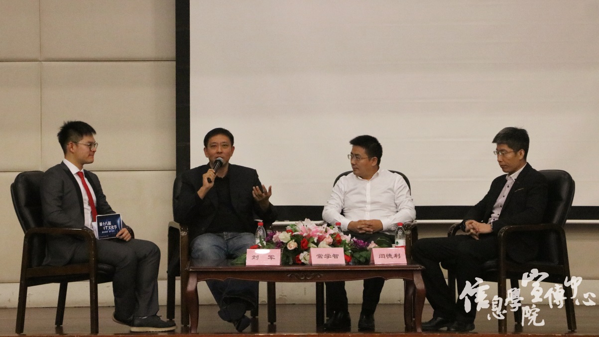 10月31日18:30,由信息学院主办的第十八届IT文化节暨电子商务创新发展论坛于宁远楼三层国际会议厅隆重举行。出席本次活动的学院领导有:信息学院院长冷柏军教授、分党委副书记张志娟老师、副院长倪耀东老师、副院长华迎老师。此外,辅导员叶潇舟老师、张延红老师、黄伟钊老师也参加了本届开幕式。本次活动特别邀请到前联想副总裁、现和顺资本董事长刘军先生,北京市电子商务投资有限公司副总经理常学智先生和京东战略研究院总监闫德利先生作为嘉宾,与大家共同畅谈电商未来之路。