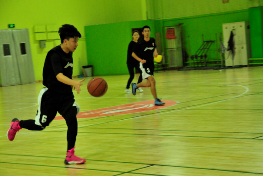 信息学院海外项目同学在校体育中心开展的“篮球友谊赛”。