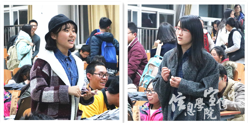 接着,来自中国传媒大学,在编剧摄影方面颇有心得的杨宝益和贾肇睿同学先后与到场观众分享了自己的体会。一段“半夏的纪念”摄像展宣传片向同学们展示出光与影魔幻般的魅力。从前期剧本编写及导演准备,中期拍摄注意事项、拍摄表达技巧,后期剪辑、字幕、配乐甚至整个制作过程中人员安排方面,两位嘉宾进行了深入浅出的讲解。他们建议,前期编剧时演职人员应统一确立影片的中心思想,后期剪辑时要注意动态镜头和静态镜头的衔接、配乐的类型等一些细节问题。嘉宾们的讲解深刻多元,诙谐幽默,现场掌声连连,在座同学获益匪浅。