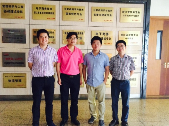 为建设信息学院大数据实验室学习经验,2017年5月26日上午,信息学院汪波老师访问了浙江工商大学计算机与信息工程学院,该学院办公室主任刘险得老师、实验室负责人倪金龙老师负责接待并陪同参观。