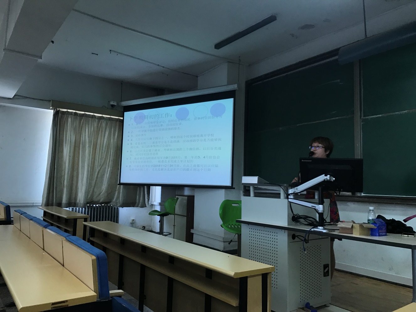 此外,在谈及下学期期初工作时,叶老师对奖学金评定、保研成绩排名、二三课堂学分、毕业生户口等同学们关心的问题进行了简要说明。