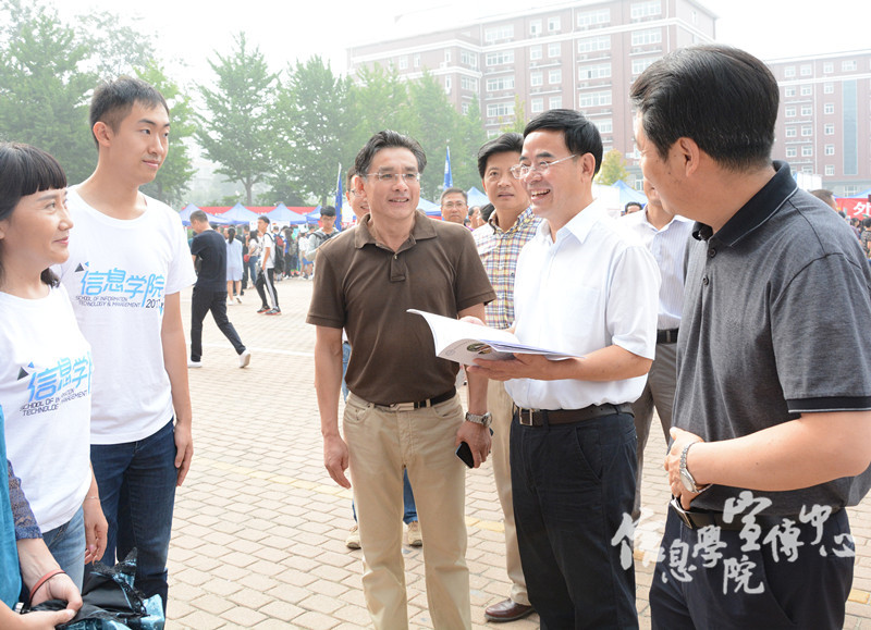 在迎新工作期间, 校党委书记蒋庆哲、校长王稼琼、信息学院院长冷柏军、副院长华迎莅临迎新现场,与前来报到的新生进行亲切交谈,并慰问了现场的工作人员,对我院迎新工作的高效创新给予肯定。