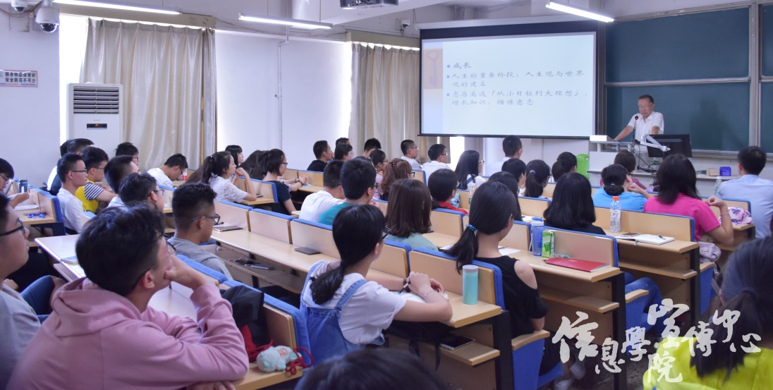本堂课是信息学院2017级本科新生入校后的第一堂课,相信同学们对进入大学的生活、学习等都有了新的感悟和启示,收获颇丰。希望2017级的每位新同学在惠园的沃土中砥砺前行,用实际行动演绎美好青春。