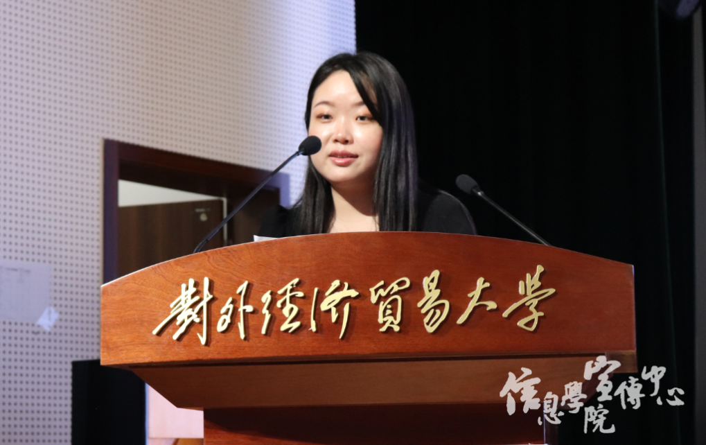 研究生新生代表严铖钦同学回顾了自己的本科经历,在大学生活中觅得良师益友,不断自我超越,在学生工作与志愿支教中磨练了自己的意志,并从支教经历中明白了言传身教、育人为本的意义。展望未来,她希望能与同学们一同面对挑战,脚踏实地,为科研做贡献,担当时代使命。