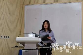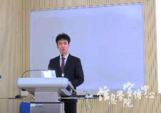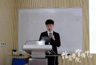 紧接着, 学生干部信息学院团学联主席高琦昇同学对上半年工作进行总结报告。他表明虽然疫情影响下各部门展开工作面临着多方阻碍,但团学联成员秉持信仰,合力并进,成功举办了各项赛事活动。根据团学联工作特点,他总结出“服务、品牌、文艺、外联、宣传”五大特质,尤其突出了团学联的服务本质,诸如开展活动帮助新生融入大学生活、增进团学联凝聚力、推动信院学生文体发展等。报告结尾,他特别赞扬了“第二十二届IT文化节”与“一二·九合唱”活动中各部门的优秀表现。