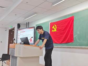 陈露琪对各组的学习成果进行了总结,并播放党纪党规宣传警示片,通过蒋铮和王祥贪污受贿的反面案例为学生们展示了《条例》对于违法犯纪行为的坚决抵制,为学生们敲响警钟,使学生们认识到遵守纪律的重要性,加强“守纪立规,筑牢党性之魂”的思想意识,并将其铭记于心。