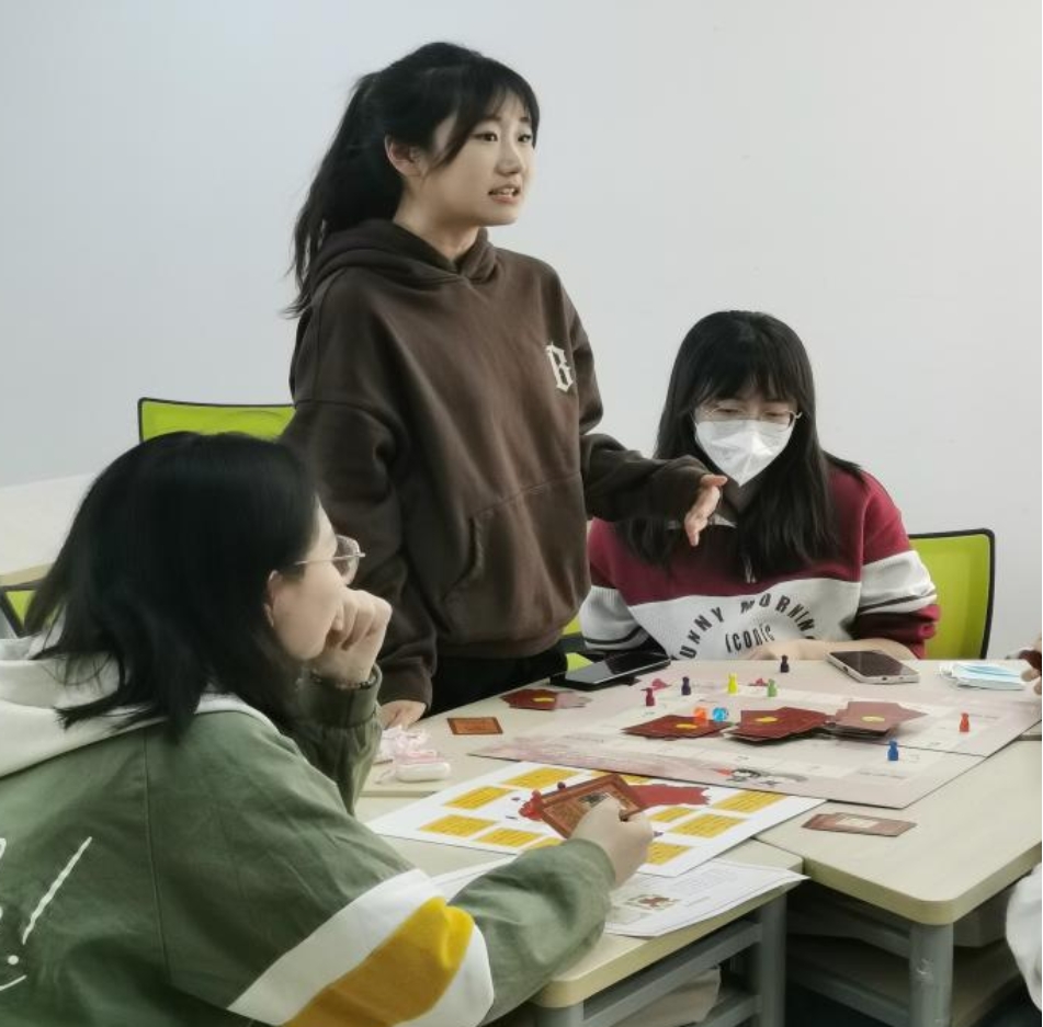 李恩澄则深受家中老党员的影响,从小便对党有着向往,但由于高中学习理科的原因没能全面、深入地去学习党史,学习有关党的发展历程、指导思想与重要政策方针,所以很高兴本次活动的开展给予了他一次趣味学习的机会,卡牌上的故事随着棋子的前进彷佛于他眼前重现,这对他来说是一次思想上的提升,也是一次精神上的鼓励。
