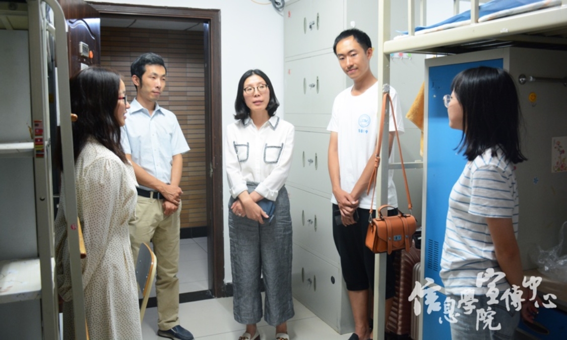 下午3点,学院领导亲自到宿舍看望新生。高玲书记、倪耀东副院长与19级新生展开亲切交谈,仔细询问了新生对大学生活的适应情况,并对他们进行生活上的指导,希望新生能够尽快适应大学的生活,让远离家乡的学子们感受到了来自学院的关怀。