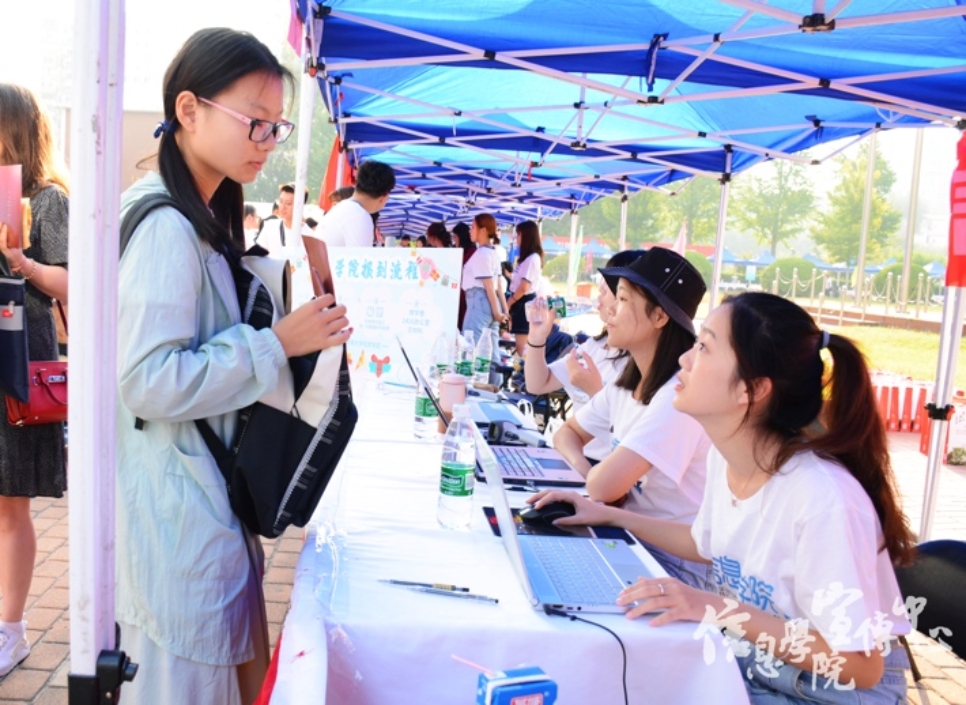 经过前期紧锣密鼓的筹备,报到当天的迎新工作有条不紊地展开。清晨5点30分,信息学院团学联的成员们就开始忙碌起来。
